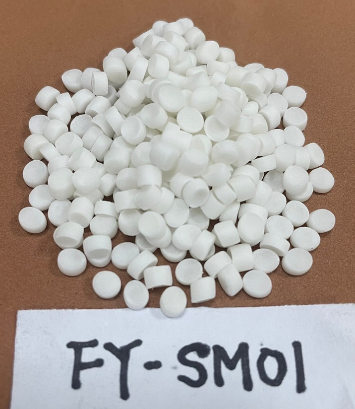 白色粒狀,可分解發泡交聯所析出衍生物,有效降低黏模和積碳狀況,改善模具黃垢並且降低成品報廢率與洗模次數。
